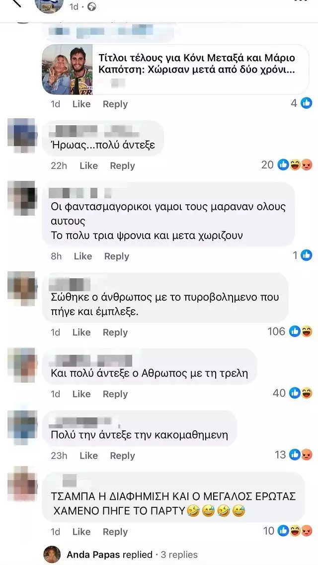 Αρχική Είδες την πρώτη αντίδραση της Κόνι μεταξά μετά τα δημοσιεύματα χωρισμού από τον Καπότση; sss-large